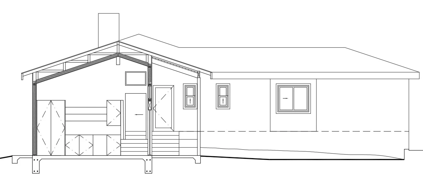 After playing with various design solutions, we decided to relocate the existing bathroom to a new addition consisting of a large yoga/ family room & kitchenette. This flexible space could also function as a guest suite or ADU. The area left behind by the existing bath was converted into an office / rear entry hall with views into the rear yard from the main house.